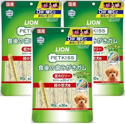 ライオン PETKISS 犬用おやつ 食後の歯みがきガム 低カロリー 超小型犬用 3個パック まとめ買い LIONPET a | Pettopoint