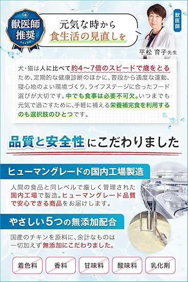 【 獣医師 推奨】大切な愛 犬 愛 猫 の 健康維持 ・ 免疫 ケアをこの1本で「最近食欲が落ちてきた」「お腹の調子が良くないみたい」「元気で 長生き してほしい」「 毛つや ・ 毛並み が気になる」という飼い主さんのお悩みに、おいしく簡単ケアできるチキン味の栄養補完食です
