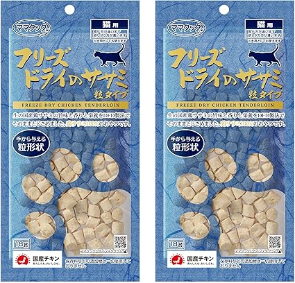ママクックのフリーズドライのササミ粒タイプ猫用は、国産の鶏ササミをフリーズドライ加工した猫用のおやつです。