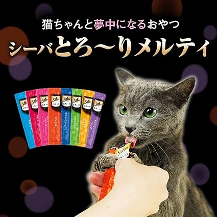 猫ちゃんが手からでも舐めやすい、贅沢なおいしさの“とろ~り"おやつ。人気の4種をたっぷり入れたセレクションの大容量タイプ。
