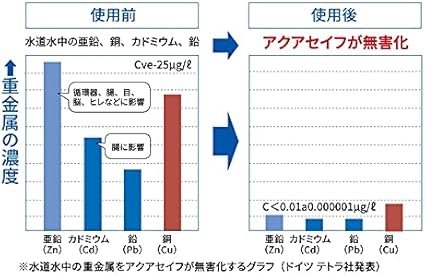 水道水に含まれる有害なカルキ・クロラミン・重金属(銅・亜鉛・鉛・カドミウムなど)を無害化します