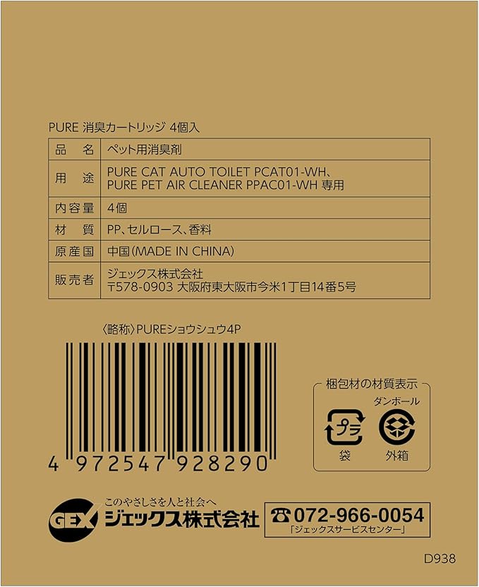 ジェックス【 PURE 】 消臭カートリッジ 4個入 森の香り 消臭ビーズ入り 1ヶ月用 PURE CAT AUTO TOILET・PURE PET AIR CLEANER a | Pettopoint