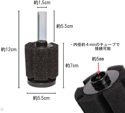 エアーストーンを内蔵してるため泡が細かくしっかりエアーリフトされて、ろ過機能もパワフル。そして音も静か。