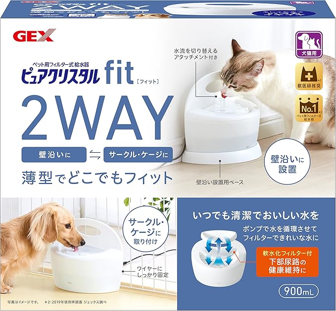 薄型でどこでもフィット!サークル・ケージに取り付け、または付属の専用ベースで壁沿いに置ける2WAY仕様。固定パーツでサークル・ケージにしっかり固定。差し込み式なので取り外しがカンタンでお手入れもラクラク。ファンネルはワンちゃんの飲みやすい深めの仕様。ネコちゃんには付属の専用アタッチメントでこぼれ落ちるお水を。