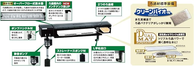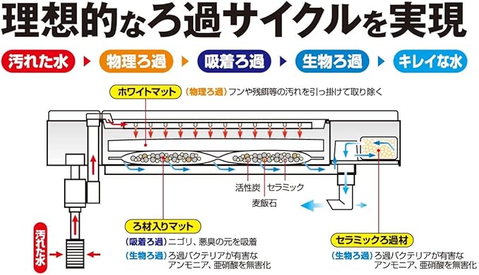 特許ろ過システム。水をキレイにする。フンや残餌をしっかり吸い込むパワーポンプ搭載。
