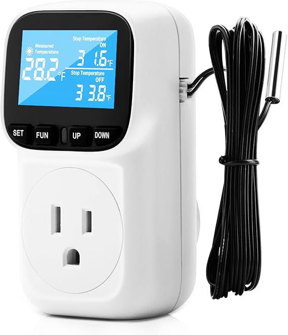 DiyStudio 7つの設定モード 1800W サーモスタット 温度制御ソケット爬虫類 夏の水槽の水温調節 ファン 水槽 サーモスタット 熱帯魚 ヒーター 水槽ヒーターの使用 暖房冷却制御 温度補正 タイマーモード(-40~120℃) 青いバックライト・スクリーン a | Pettopoint
