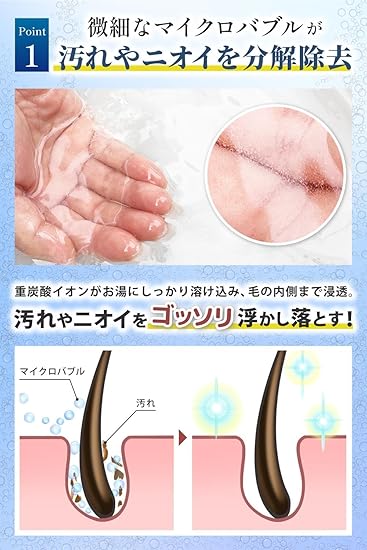 【浸かるだけで洗浄&保湿】お風呂に浸かるだけで汚れやニオイを落とせる炭酸入浴シャンプー。入浴剤を混ぜたお風呂につかるだけでカラダを綺麗にできるので、お風呂を嫌がる子でも手軽にシャンプーすることができます。