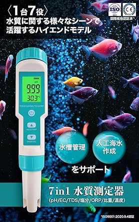 FieldNew 【国内ブランド/水槽管理に最適】防水 水質測定器 (PH/EC/TDS/塩分/比重/ORP/温度) 国内品質検査済 保証書付き 高精度 自動校正 7 in 1 動画解説 簡単操作マニュアル 校正剤付き アクアリウム 人工海水 a | Pettopoint