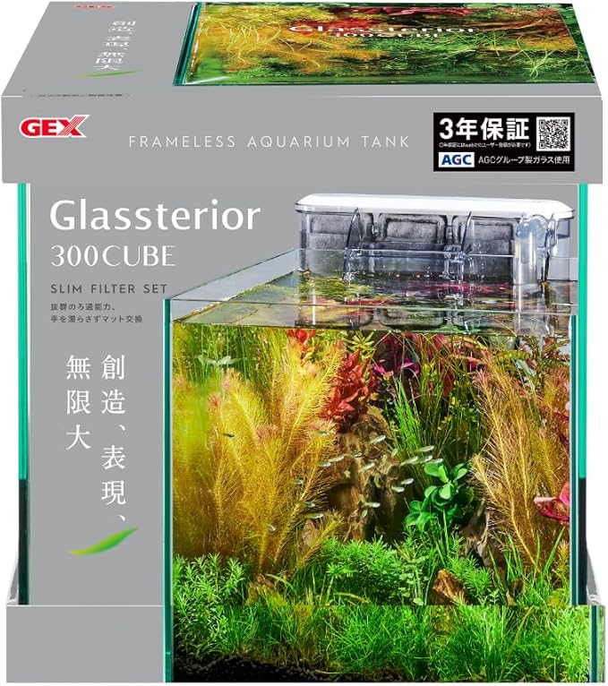創造、表現、無限大 「透明感」にこだわるグラステリア水槽シリーズ。 水槽内を明るく照らす別売のクリアLEDフラッティが取付けられる、専用フタ「アクアカバー」付き。 グラステリアはガラスと、ガラス同士を接着するシリコンだけでできています。そのシンプル構造がグラス