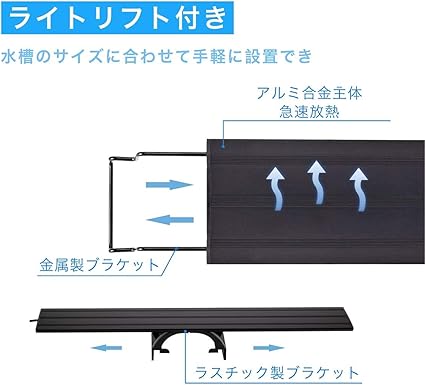 【高輝度LED】水槽ライトは耐久性のある14W高輝度LEDを採用して、完全な色比率により、フルスペクトルを実現して、魚と水草を色鮮やかに照られて、魚の飼育と水草の育成に最適です。淡水・海水水槽どちらも美しく演出でき、省エネで長寿命のLEDライトで手軽にアクアリウムをお楽しみいただけます。