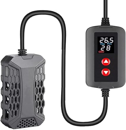 QOSEREN 水槽 ヒーター サーモスタット付き 金魚 ヒーター 温度調節 コントローラー 18-35度調整 リアル温度表示 縦横設置 セーフカバー 設置吸盤付き 自動恒温 熱帯魚 金魚 カメ 水槽用 100W a | Pettopoint