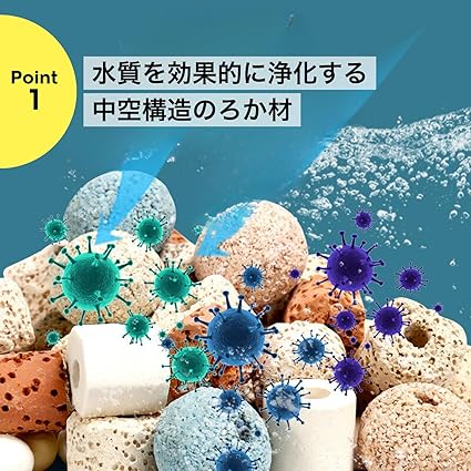 【中空構造で強力な分解力】内部が中空構造なので、強力な吸着力と分解能力があります。細孔が多く、通常の培菌量の数倍あり、亜硝酸塩を迅速に分解できます。