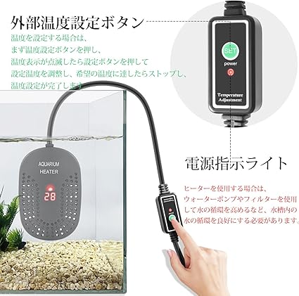 FEDOURミニ小型水槽ヒーター 50W、サイズ:11.5 * 7.5 * 3.5cm、電源ケーブルの長さは1.75m、3つの強力な吸盤と1つの温度計ステッカー付き、30-60Lの金魚水槽、亀水槽などに適しています。冬には、水槽を十分に加熱するために、40-60Lの水槽ではより高いワット数を選択することをお勧めします。 ヒーターを使用する場合は、ウォーターポンプやフィルターを使用して水の循環を高めるなど、水槽内の水の循環を良好にする必要があります。