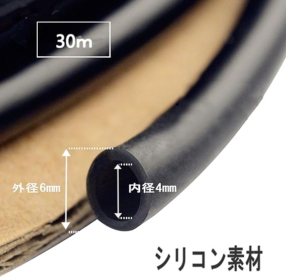 【サイズ】 内径4mm、外径6mm 【長さ】 30m 【色】 ブラック 黒 【素材】 シリコン