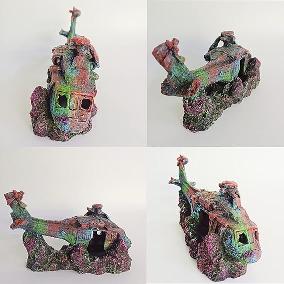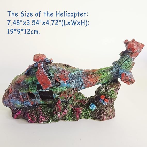 淡水と海水の両方に設置できるヘリコプター アクアリウム デコレーションです。 水槽に入れる前に、ヘリコプターを水に浸してください。
