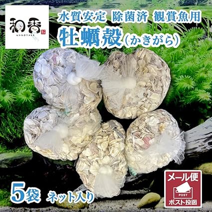 牡蠣殻は小魚やエビのシェルターにも、ネット入りはバクテリアの着床巣にもなります