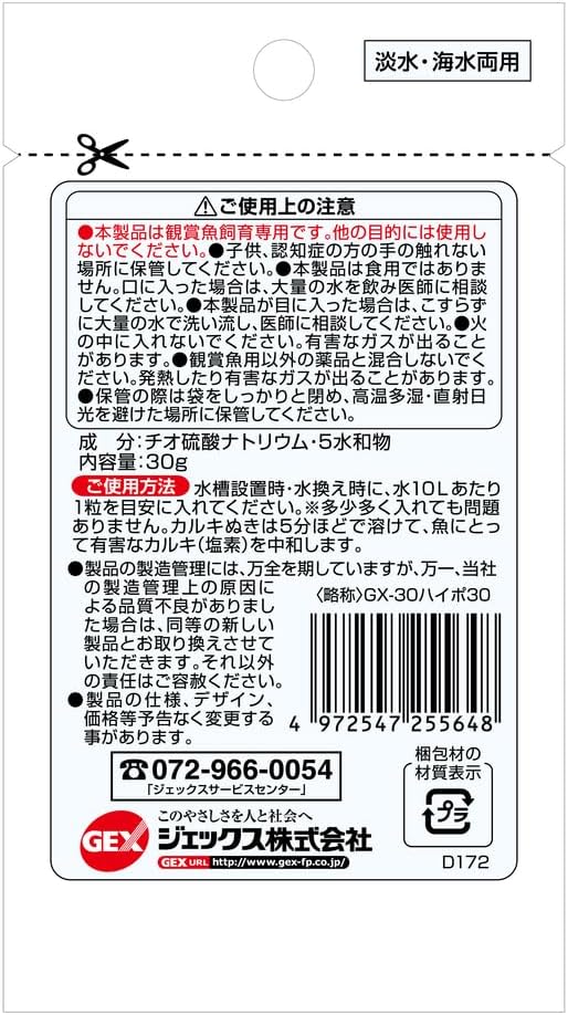 観賞魚の飼育に用いる水道水に含まれるカルキ(塩素)を中和!