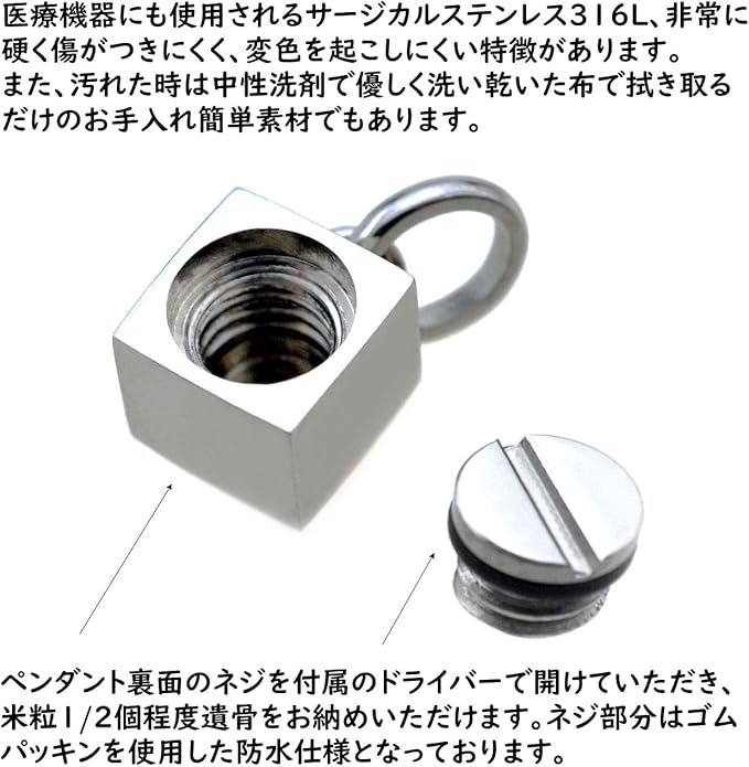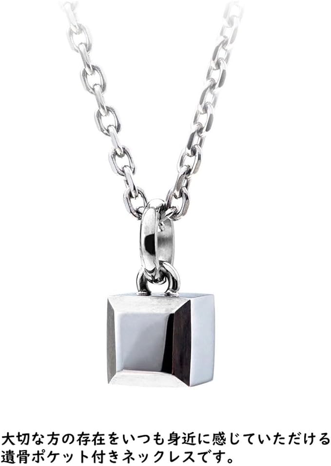 [Jewel of Memory] 遺骨ペンダント 遺骨ネックレス 手元供養 メモリアル 遺骨入れ ステンレス 316L メンズ レディース チェーン2本付き キューブ
