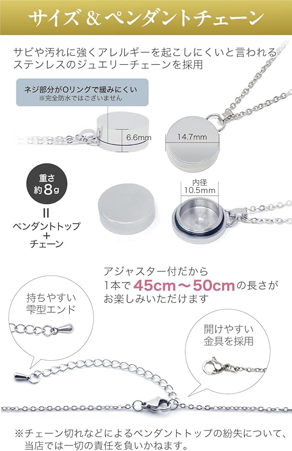 [ASHIFA] 遺骨 ペンダント サークルシリーズ 手元供養 納骨セット付 金属アレルギー対応 安心 全3色 日本製 遺骨カプセル 遺骨入れ 遺骨 ネックレス 遺骨 アクセサリー ステンレス製 メモリアルペンダント (サークル, シルバー) a | Pettopoint