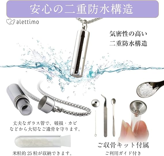 [alettimo] 遺骨 ペンダント 安心二重防水 収骨キット付属 メモリアルペンダント 遺骨入れ 遺骨カプセル ネックレス 手元供養 低アレルギー ステンレス製 ガラス管 キーホルダー (鏡面 仕上げ, 1.シルバー) a | Pettopoint