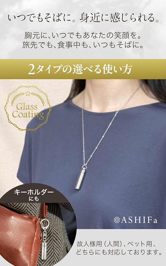 [ASHIFA] 遺骨 ペンダント 手元供養 セット付 金属アレルギー対応 ガラス管 二重構造 安心 遺骨カプセル 遺骨入れ ネックレス キーホルダー ステンレス製 メモリアルペンダント (4.ブラック) a | Pettopoint