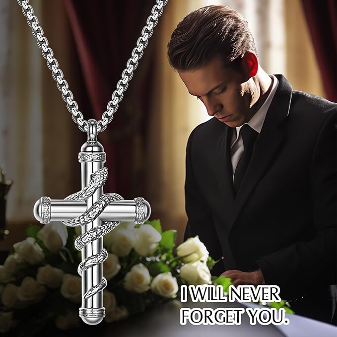 [JEWELRYWE] 遺灰ネックレス 十字架 ペンダントネックレス 遺骨ネックレス ステンレス: レトロ クロスネックレス 蛇 巻き アンティーク - 記念 骨壷 ミニ ペット 大切な人記念 a | Pettopoint