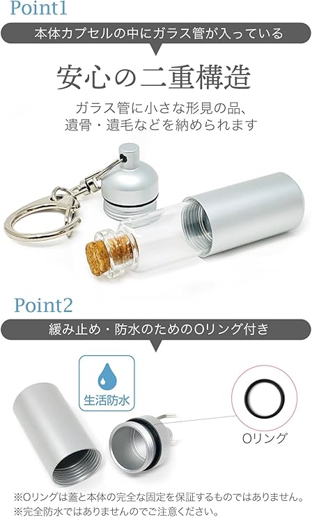 [ASHIFA] 遺骨 キーホルダー ペンダント付き ガラス管入り 二重構造 写真が入る メモリアルボックス付き 遺骨カプセル 遺骨入れ 遺骨 ペンダント ネックレス アクセサリー b | Pettopoint