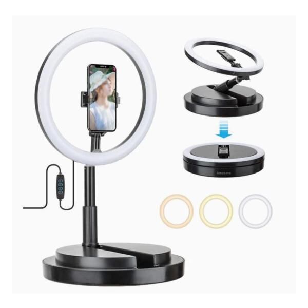 iPhone・Androidなどのスマホできれいな写真・動画を撮影したいならこの3色LEDリングライトをお勧めです、女優ライト 卓上 美顔 自撮りライト 照明キット iphone/スマホ/写真/YouTube生放送/美容化粧/tiktok ledリングライト