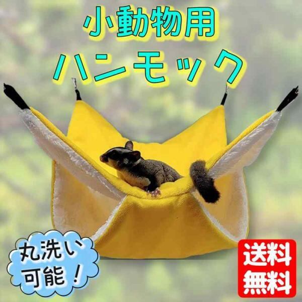 Lanx. 小動物用 ハンモック (20×20 イエロー) ブランコ 吊り下げ金具付 ケージ ハムスター モルモット ハリネズミ チンチラ フェレット モモンガ デグー ペット用品 インコ 遊び場 寝床 寝袋 暖