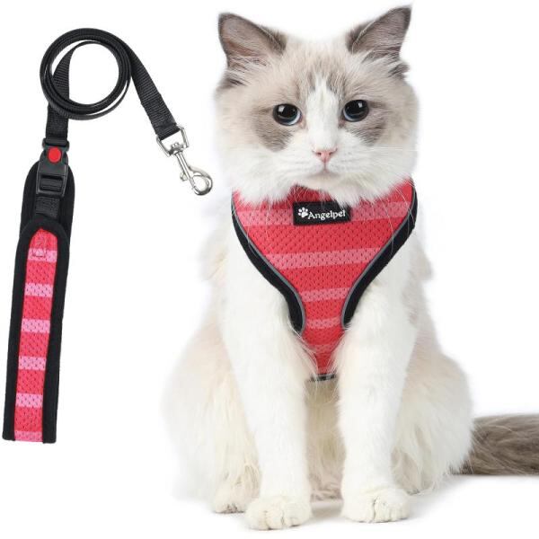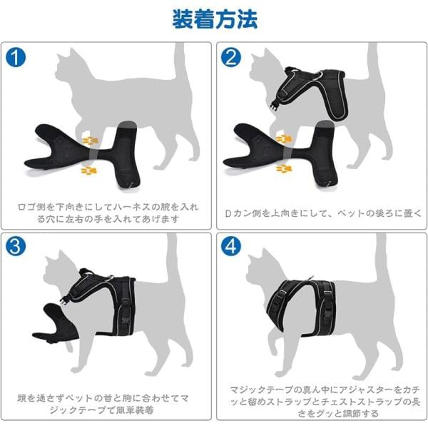 猫 猫用 ハーネス 胴輪 猫具 ねこ ネコ 子猫 子犬 小型犬 散歩 お出かけ 抜けない ベスト ソフト胸あて 軽量 頭を通さずマジックテープで装着 サイズ調節可 夜反射 通気メッシュ (Sサイズ (x 1