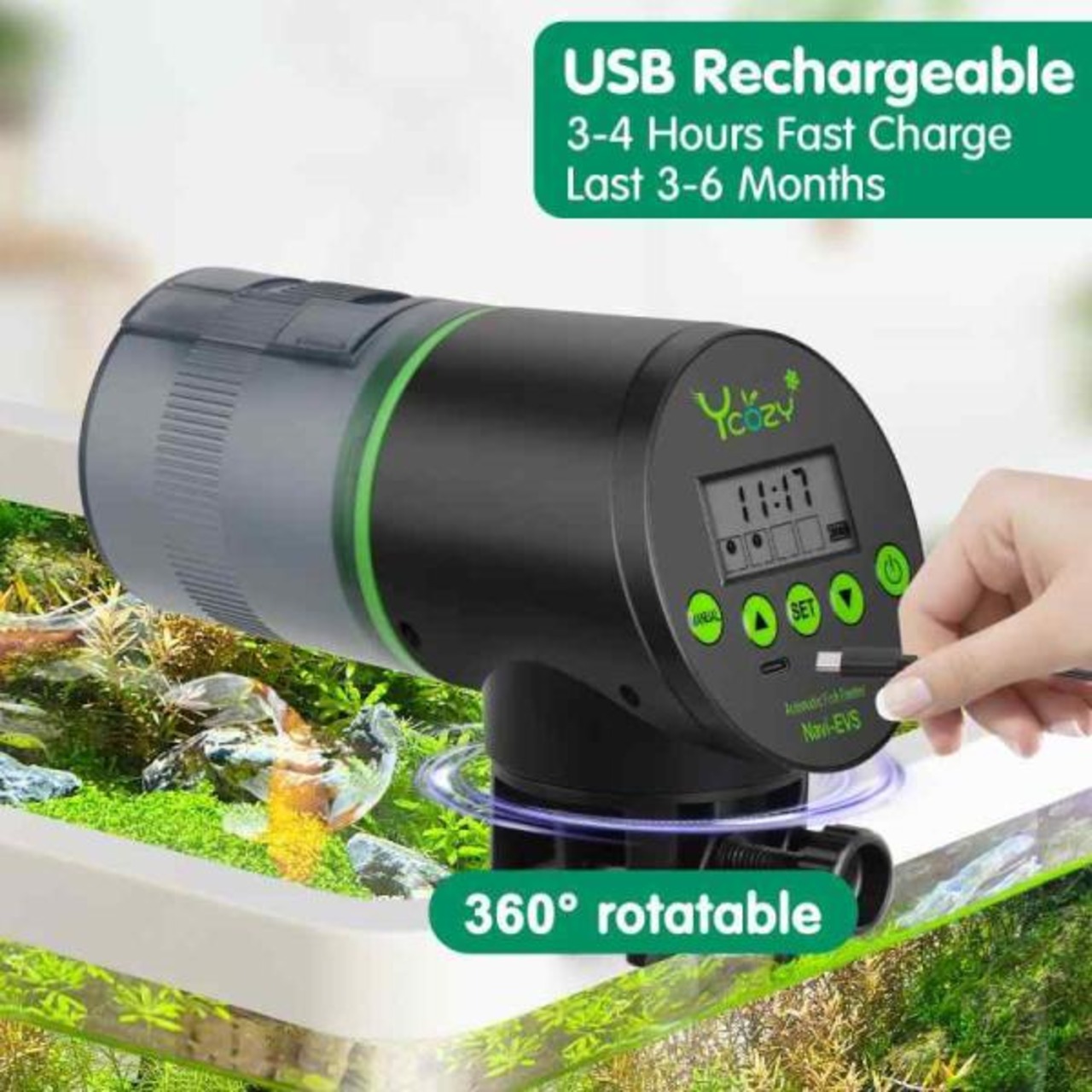 Ycozy 魚自動給餌器 二代 USB充電式 湿気防止 水族水槽用タイムフィーダー 熱帯魚 金魚 オートフィーダー 水槽 自動餌やり機 餌やり器 | Navi-EVS