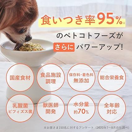 【トッピングや主食に】3000万食突破の、新鮮国産食材を中心に使用した手作りドッグフードが常温ウェットフードになりました。総合栄養食の基準を満たしているので、いつもの食事の主食・トッピングとして利用可能です。