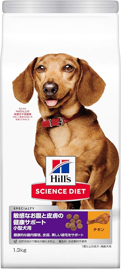 ヒルズ サイエンスダイエット ドッグフード 敏感なお腹と皮膚の健康サポート 小型犬用 チキン 1.3kg 1歳以上 成犬用 高齢犬用 アダルト シニア ドライ お試し トライアル | Pettopoint