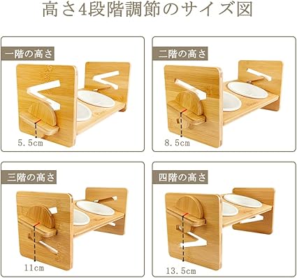 「高さ調整&斜め餌台」: 餌台面の高さは、5.5cm-13.5cmの間に4段階で調整可能です、ペットの成長とともに,長時間利用は可能です。餌台面、食べやすい適度な角度