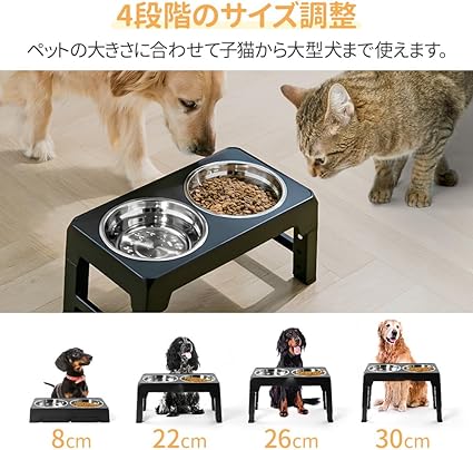食べやすい高さにフードボウルを設置することによって、快適な姿勢で食事をする事が出来ます。
