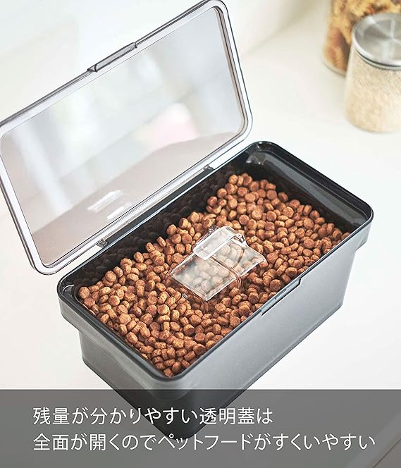 山崎実業(Yamazaki) 密閉 ペットフードストッカー 1.5kg 計量カップ付 ブラック 約W28×D16.5×H12.2㎝(蓋開口時:約H27㎝) タワー フードストッカー 保存容器 5610 | Pettopoint