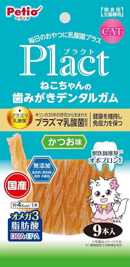 原材料:肉類(鶏ササミ・鶏レバー)、牛皮、馬鈴薯でんぷん、かつおエキス、植物性油脂、魚油(DHA・EPA含有)、酵母エキス、殺菌乳酸菌(プラズマ乳酸菌)、卵黄粉末(オボプロン含有)、グリセリン、加工でんぷん、増粘安定剤(グァーガム)、酸化防止剤(亜硫酸Na・V.E)