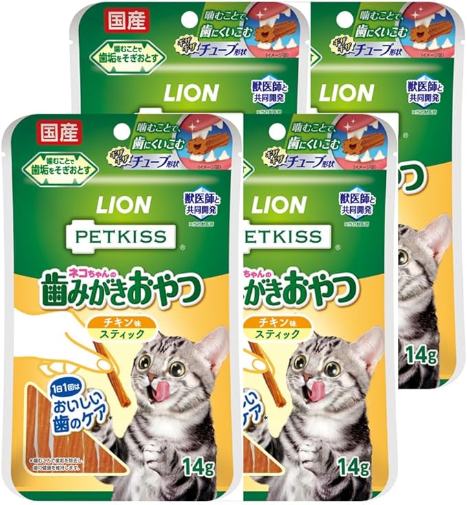 ライオン PETKISS 猫用おやつ ネコちゃんの歯みがきおやつ スティック チキン味 4個パック まとめ買い LIONPET | Pettopoint