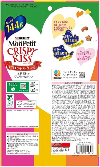 モンプチ クリスピーキッス 猫用おやつ バラエティーパック セレクトシリーズ (シーフードセレクト・チーズ&チキンセレクト・ミックスグリルセレクト風味) 144g(6gx24袋) | Pettopoint