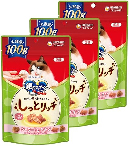 【まとめ買い】銀のスプーン 猫用 おやつ おいしい顔が見られるおやつ しっとりシーフード・チキン 100g×3袋 国産 キャットフード ユニチャーム