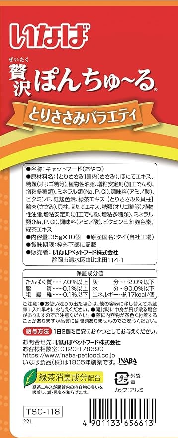 いなば 猫用 贅沢ぽんちゅ~る とりささみバラエティ 35g×10個 | Pettopoint