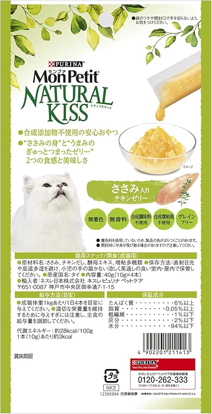モンプチ ナチュラルキッス 猫用おやつ ささみ入りチキンゼリー (10g x 4本)×5袋 (まとめ買い)