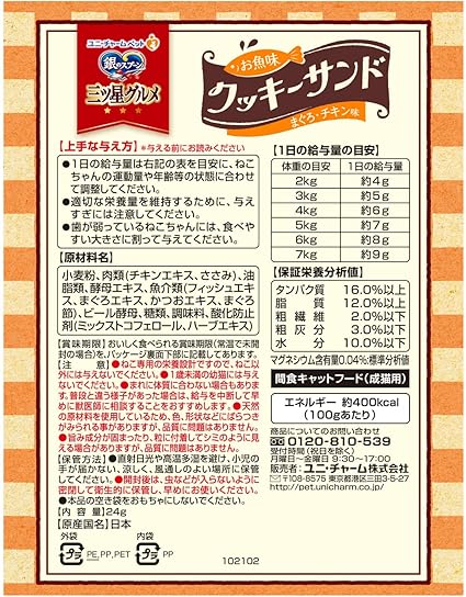 【まとめ買い】銀のスプーン 猫用 おやつ お魚味クッキーサンド まぐろ・チキン味 24g×5 国産 キャットフード ユニチャーム
