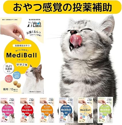メディボールはお薬が苦手なネコちゃんのために獣医師と共同で開発した投薬補助用のおやつです。
