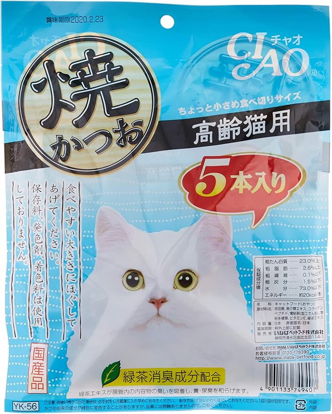 チャオ (CIAO) 焼かつお 高齢猫用 かつお節味 5本 4個セット