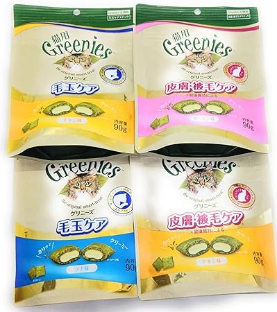 グリニーズ 猫用 皮膚 被毛ケア 毛玉ケア サーモン味 ツナ味 チキン味 90g 4袋セット おやつ