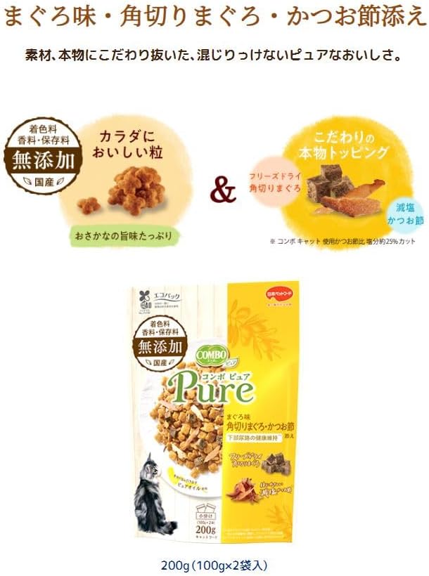 コンボ ピュア キャットフード まぐろ味・角切りまぐろ・かつお節添え 200g 【国産】 【小分包装】 【フリーズドライ】