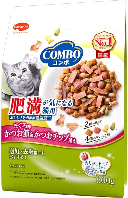 コンボ キャット 肥満が気になる猫用 まぐろ味・かつお節・かつおチップ添え 600g
