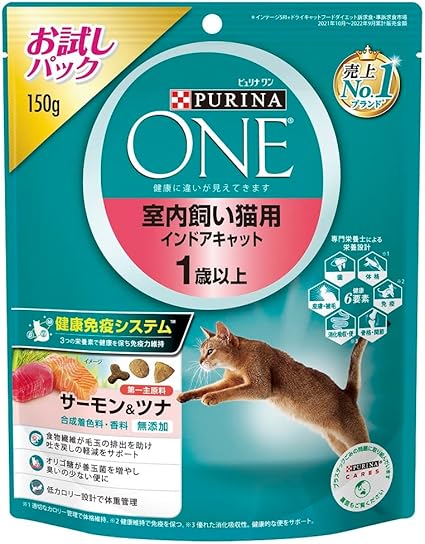 天然食物繊維を配合し、毛玉をケア。天然オリゴ糖が腸内の善玉菌に働きかけ、便の臭いに配慮。新鮮なサーモン&ツナを主原料に使用した低カロリー設計。