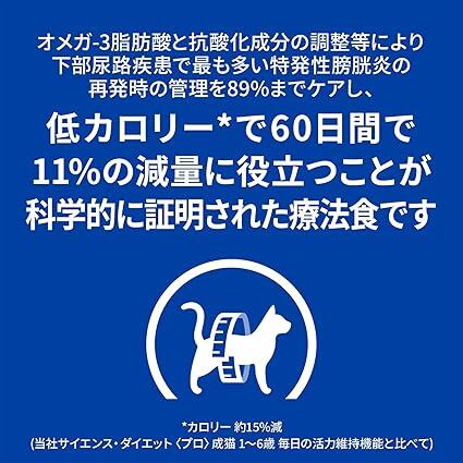 ストルバイト尿石溶解時の管理に最短7日間(平均27日間)で役立つことが科学的に証明されていることと、ストルバイトとシュウ酸カルシウム尿石の形成を抑制します。